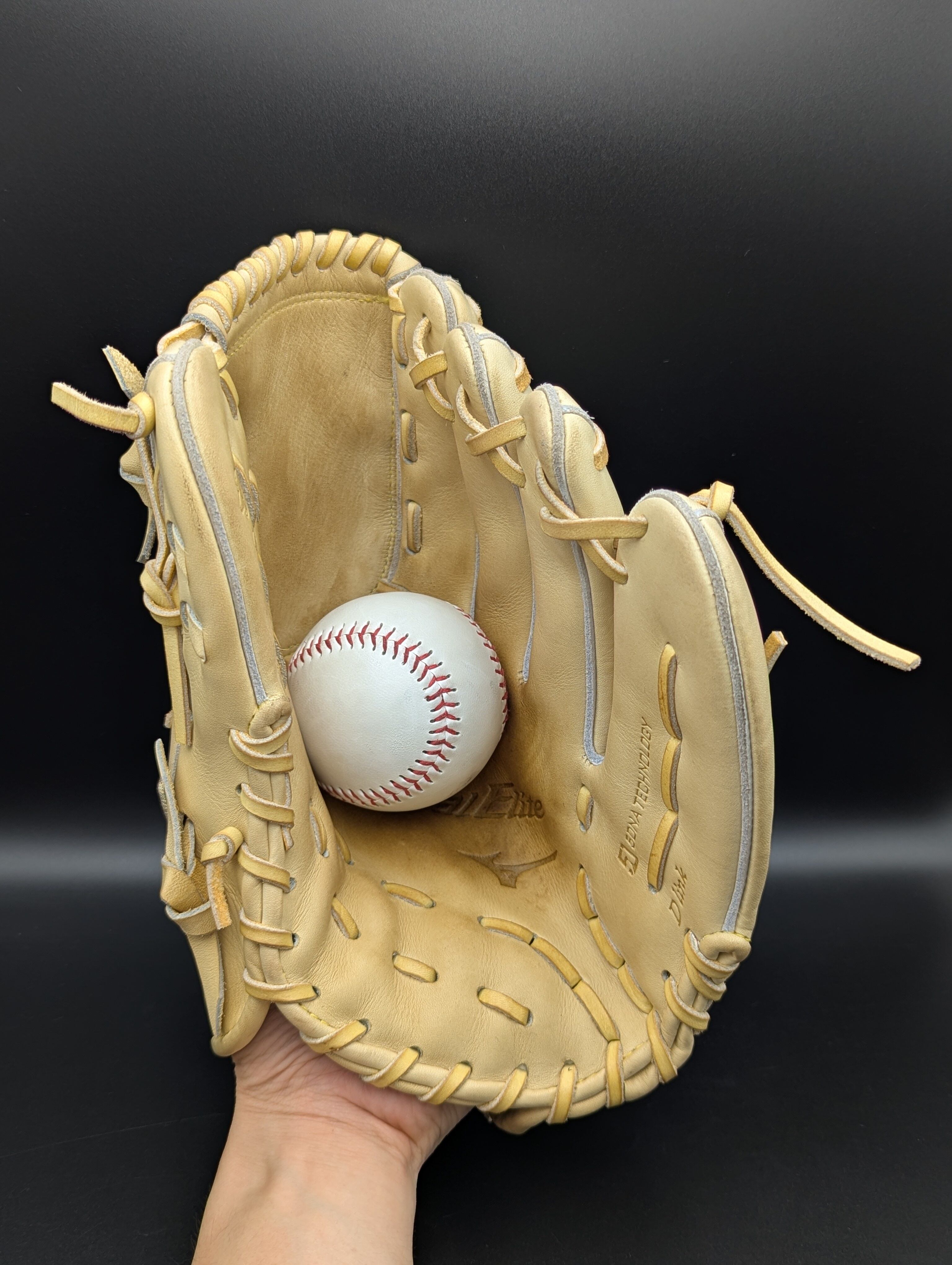 捕球面にオイル出しはされています。背面は目立って汚れはなく、硬さやハリも残る上質なグローブです。
