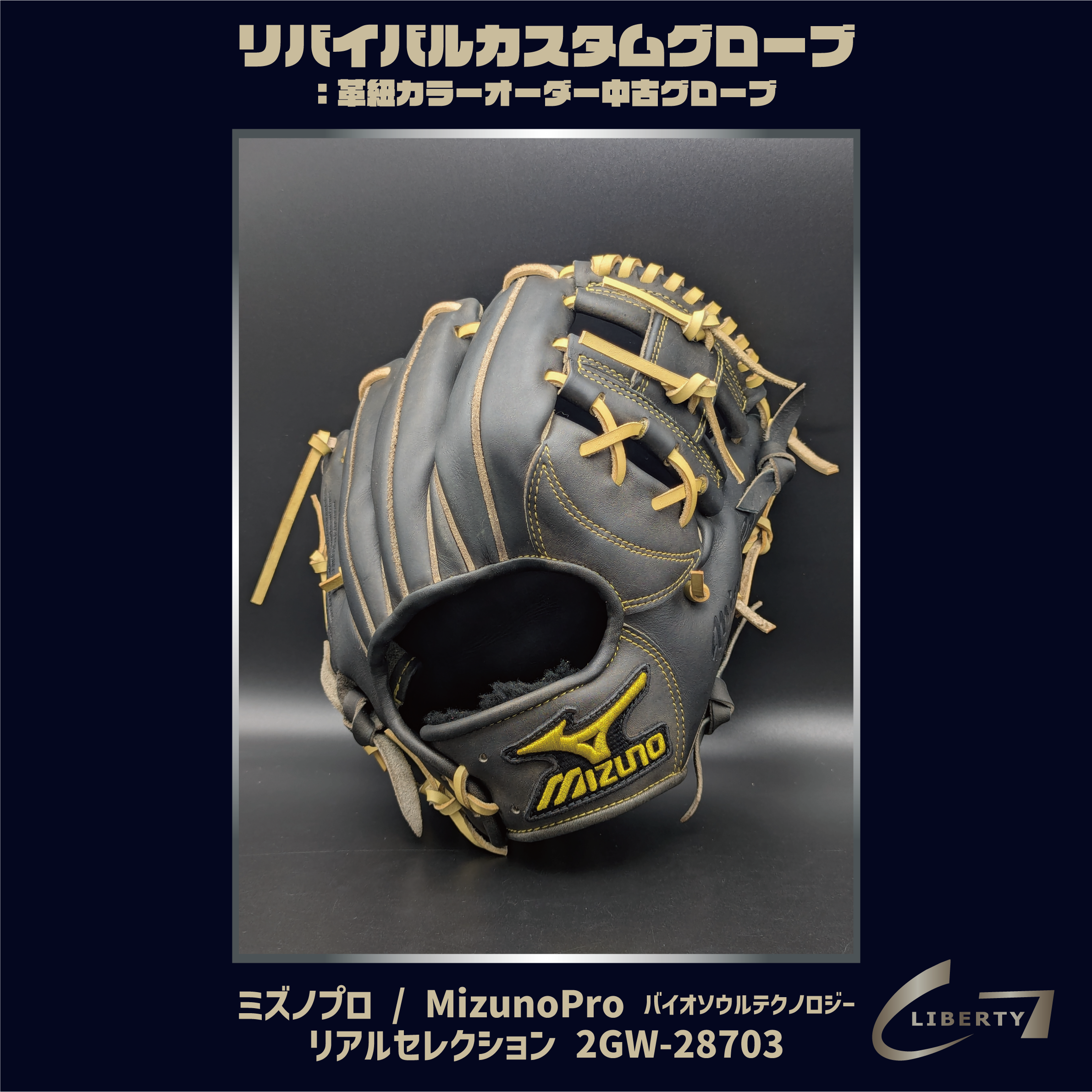 全紐交換済・キップレザー【硬式】ミズノプロ バイオソウルテクノロジー リアルセレクション / MizunoPro 2GW-28703 リバイバルカスタムグローブ(本体:ブラック)| G-LOVE LIBERTY