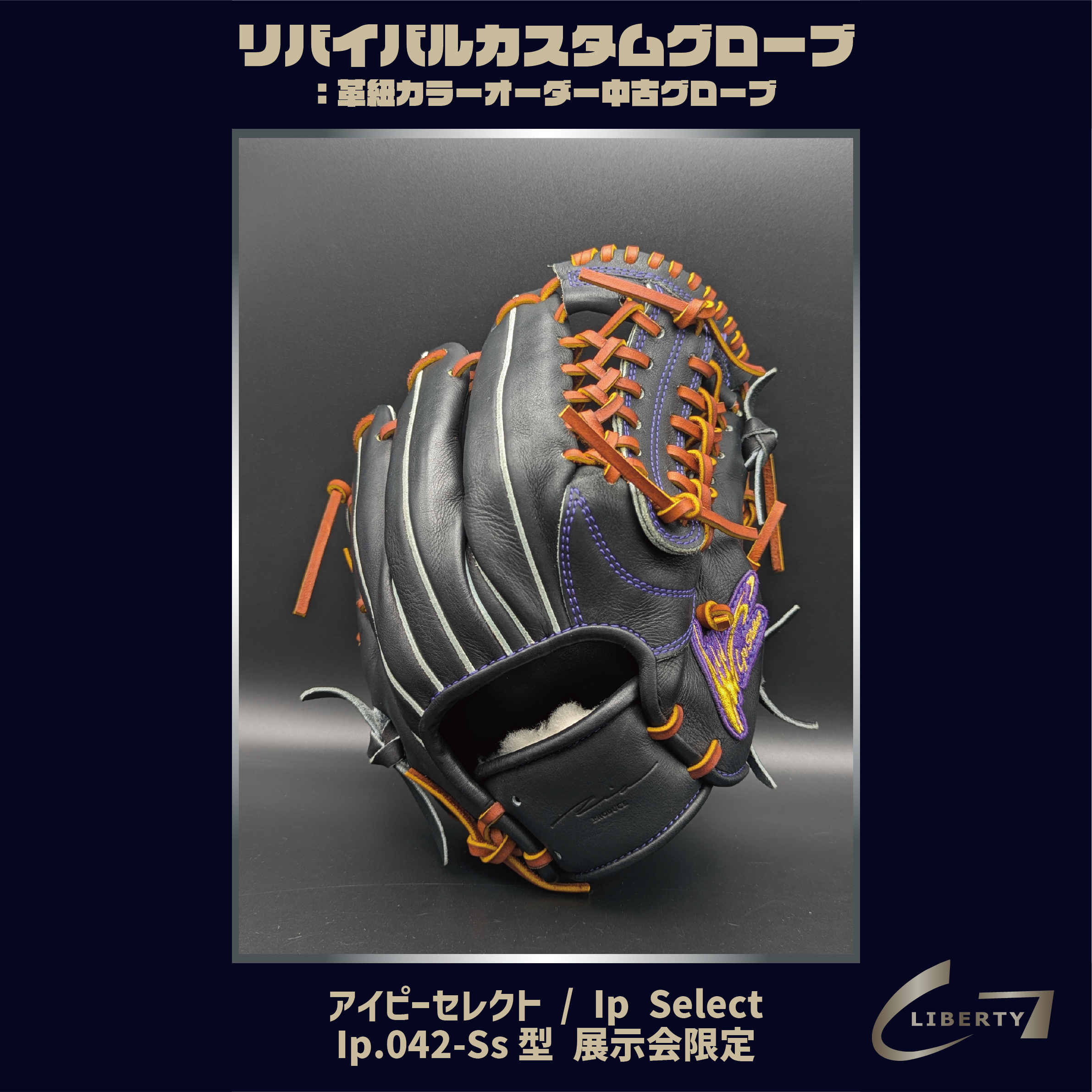 未使用・当社型付け済み【硬式】アイピーセレクト 限定モデル / Ip Select Ip.042-Ss型 展示会限定 リバイバルカスタムグローブ(本体:ブラック)| G-LOVE LIBERTY | 【グローブ修繕販売】G-LOVE LIBERTY | グラブリバティ